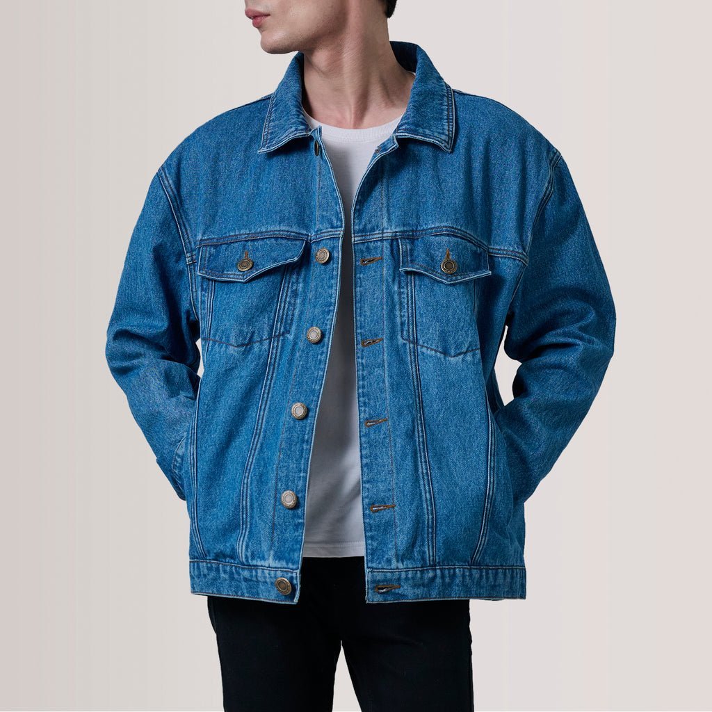Eddie Dark Blue Oversized Denim Trucker Jacket